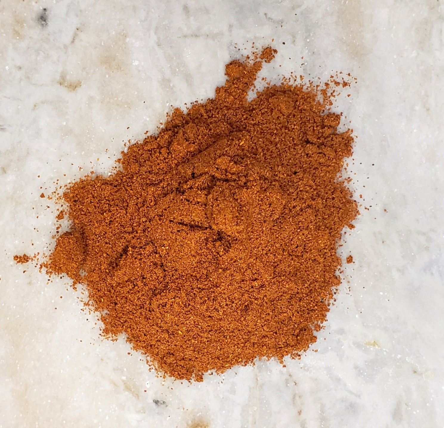 Chipotle chilies are ripened jalapenos that have been smoked and dried before grinding into a powder. They have a smoky, slightly sweet flavor with a bit of bitterness. Scoville Units 2,500-10,000.